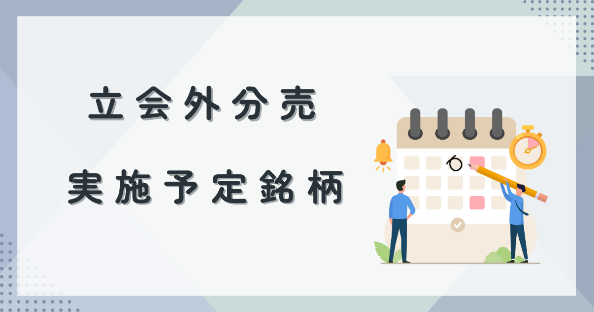 これから実施予定の立会外分売の銘柄を掲載しています。立会外分売では、分売実施日 前営業日の終値より平均2%~3%程度ディスカウントされた価格で購入することができます。